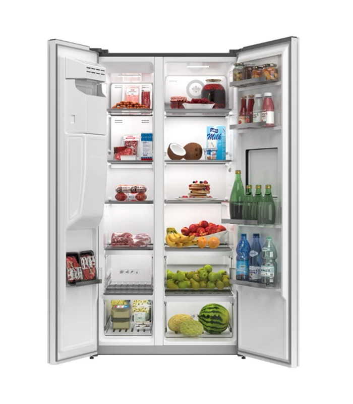 در بخش داخلی یخچال، فضای بزرگی در نظر گرفته شده که از طریق طبقهبندیهای مناسب به شما این امکان را میدهد تا انواع مواد غذایی را به راحتی و با نظم بیشتری نگهداری کنید. دربهای بزرگ و شیک این دستگاه به شما اجازه میدهد به آسانی به تمامی قسمتهای یخچال و فریزر دسترسی داشته باشید. همچنین، لامپهای LED داخلی، علاوه بر کاهش مصرف انرژی، نور کافی برای مشاهده تمامی بخشهای یخچال را فراهم میکنند.